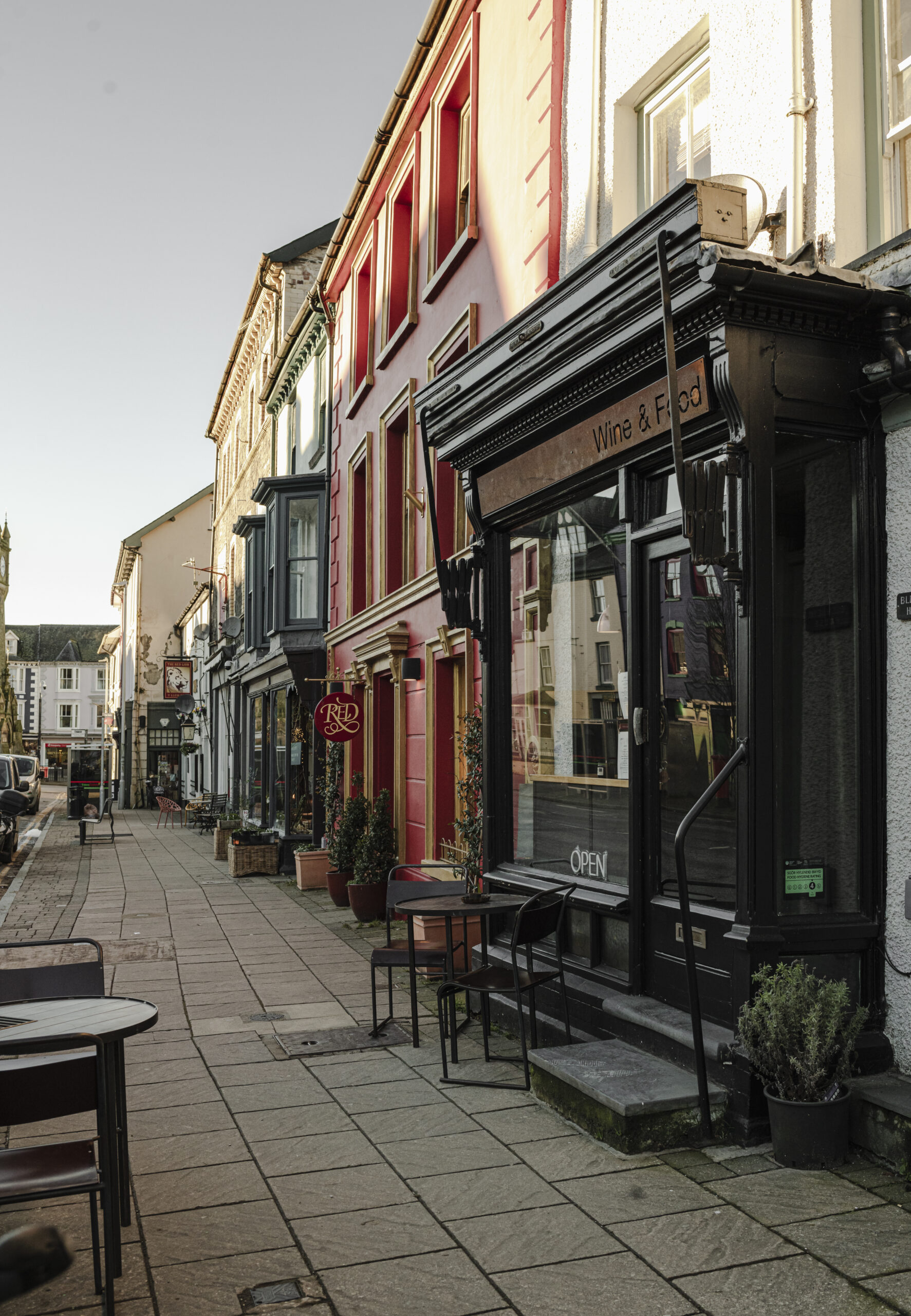 In the diverse town of Machynlleth, lined with independent shops and cafes, sits Gwen. Only 3 metres wide, sitting at the centre of the high street, next to the only set of traffic lights, it’s unassuming frontage hides a dark and cosy bar serving specialist cocktails and wine. Head to the back, behind the thick leather curtain, and you enter the restaurant. A single room, a single sitting for 8 diners, shared seating and a completely open kitchen, this is dinner in our home. Somewhere to make new friends or enjoy some great food with best friends. Or both.